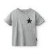 Cute grey unisex tee with a black star graphic at left chest. Features deconstructed custom torn edges.