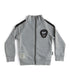 Heather grey french terry zip sweatshirt jacket. Features a skull patch at left chest, high neck, thumb holes, contrast stipe on sleeve, label patch at bottom right and two side pockets. Made from 100% cotton.