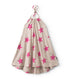 Easy, cotton halter dress in a smokey natural color with all over pink star print. Features and adjustable tie, loose fit, pockets and solid twirl factor.