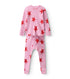 Bubblegum pink lounge set with all over red stars print. Top features rounded crew neck and ribbed cuffs. Bottom features a slight drop crotch, elasticized waist and ankle cuffs. Made of 100% cotton with slight stretch for a comfortable fit.