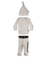 An adorable baby three piece gift set including a simple long sleeve top, footed pants and a matching knot hat. Unisex set is made from 100% cotton.