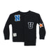 One of our favorite sweatshirts of the season. This unisex style features raw edges, an exposed seam down the front, and uneven hemline and varsity style letter & symbol appliqués on the front and sleeve. A cozy statement piece for cool kids.