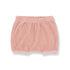 Soft ribbed terry shorts. Features elasticized waistband, back pocket, stretchy leg openings and allover textured rose color stripes. Pair with our Tolon Sleeveless Top for an adorable set.