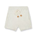 Relaxed fit shorts. Features ribbed waistband and back hem, side pockets and natural colored tie with leather finishing. Pair with this top for a comfy set.