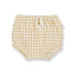 Sweet gingham print bloomer in natural and muted "sun" color. Features a natural colored waist tie, elasticized waist and leg openings.