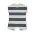 Soft terry romper. Features ribbed crew neck, cut off sleeves and snaps at the bottom for easy dressing.