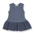Soft, ribbed textured tank style dress with drop waist. Skirt is slightly deeper blue french terry. Stretchy fabric is easy to pull on and off.