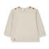 Soft ribbed cotton long sleeve top in a neutral sand color. Features cute wooden buttons on the shoulders for easy dressing. Made from 48% cotton, 47% Modal and 5% elastane for stretchy comfort. Made in Spain.