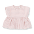 Airy cotton striped blouse. Features a rounded collar, lightly flared cap sleeves, button closure down the back, gathered waist and peplum style bottom. Pair with our Ibiza Bloomers for an adorable look.