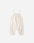Spaghetti strap jumpsuit with fixed ties in a sweet all over tiny floral print. Features a smocked back, elastic leg openings, and snaps down the inseam for easy changes - a go-to this season for your little one!