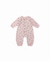 Waffle knit jumpsuit in lilac with hearts. Features a relaxed silhouette and button placket for a classic look.