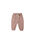 Cute gingham woven cotton pants in an easy pull on and off style. Features an elasticized waist with contrast natural colored drawstring, two side pockets, elasticized ankles and a roomy fit.