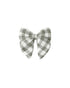 Soft cotton bow clip in a forest check print with a hidden alligator clip.