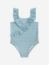 Bobo Choses Baby Vichy Ruffle Swimsuit. - Aqua Blue