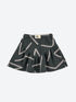 Comfy sweatpant feel skirt with a flattering v-seam design. Features an all over lines print. A not so basic neutral piece that will mix and match within your little one's wardrobe. We love it with this adorable elephant tee.