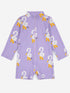 88% polyamide 12% elastane lavender playsuit swimwear. Designed with long sleeves and front zip fastening. It has a slim fit. Made in Spain