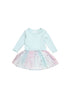 This sweet, Rainbow Flower Rib Ballet Onesie has a super soft, long sleeve rib top with lettuce edge sleeves. Features an all over rainbow flower print on the twirl worthy tulle skirt.