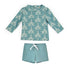 Adorable swim set in a tropical print. Features a rash guard and matching swim bottoms.
