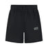 Black sweat shorts with white logo. Made from a soft, comfortable cotton blend. Features an elasticized waist, side pockets, a pocket on the back and a regular, straight fit.