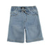 Light blue denim shorts featuring elasticized waist, two front pockets, two back pockets and drawstring front. A cool & comfortable basic, must have piece.