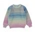Gorgeous knit sweater in a pastel melange. With colors ranging from light blue, to mint green and light purple in a seamless transition that creates an exciting, fresh look. This jumper is in a cotton/wool blend, has raglan sleeves, a round neck with knit rib, long sleeves and rib at the sleeves and bottom.
