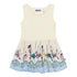 Off-white tank dress with a circular skirt that has lots of twirl factor. The top is made of a comfy rib jersey and the skirt features a pretty "sea carousel" print on the skirt.