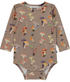 Adorable bodysuit in an all over print of mushrooms in various colors and shapes. Features long sleeves and button snap closures at the neck and between the legs. Made from 95% organic cotton and 5% elastane for stretchy comfort.