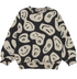 Black sweatshirt with a beige all over print of smiley faces floating around in varying shapes. Features a round neck with a rib edge as well as rib at the sleeves and bottom. It is in a loose fit. Pair with our Adan joggers in black for a coordinated look. Made from 100% cotton.