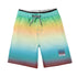 Swim shorts in gradient shades of yellow, turquoise and green. The swim shorts are made of 100% recycled polyester and have ties and a wide elastic at the waist. They have side pockets, a practical back pocket and a Molo Swim label at one leg opening. The swim shorts are in loose fit. Molo's swimwear has 50+ UV protection.