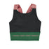 Feminine cropped sports top in black and the bottom edge is green. Features wide rose coloured shoulder straps with text print: #molo #run #jump #dance. The top is perfect paired with sport leggings. This top is part of Molo's sports collection, which helps integrate sports and fashion. The top is comfortable and constructed in technical materials that make it wearable for down time as well as intense activity.