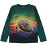 Green, long sleeve t-shirt with a UFO print on the front. There are UFO’s on this print that are flying faster than the speed of light. Watch out for all the hazards out there. You have to be a skilled alien in order to successfully navigate the asteroid belt. The print is in clear rainbow colours. This long sleeve t-shirt is constructed in 100% cotton and has a round neck and a regular fit.