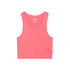 Wardrobe staple cropped tank top in pink. Features racer back and a small tone on tone logo with text "more love" at bottom right.