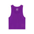 Wardrobe staple cropped tank top in purple. Features racer back and a small tone on tone logo with text "more love" at bottom right.