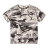 Rodney is a t-shirt in a black, all over print in 100% organic cotton. The print is a 2-toned abstract print that shows a street full of breakdancers and cars. One sleeve has a small, purple print with the words "On Fire". Rodney has a round neck with rib and is in an oversized fit. If you want a more classic fit, or if your child is between sizes, we recommend you choose one size smaller than normal.