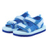 Lightweight, sporty sandals in light blue with a soft foam sole. The sandals have comfortable neoprene panels that keep the foot in place. They have practical velcro closures at the ankles and over the foot to make them easy to put on.