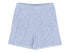 Lightweight knitted short. Features thin white contrast trims on the sleeves and hemline. Pair with the matching top for a sweet set.