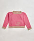 Rose colored sweater with beige trim and text "I see you." Made from 100% baby alpaca fleece, ethically made in South America according to fair trade principles. Our knitwear combines traditional craftsmanship with modern design for a truly special heirloom. Exceptionally warm yet breathable, this eco-friendly fiber is naturally hypoallergenic and always soft. Alpacas are incredibly earth-friendly, with gentle and efficient grazing habits.