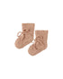 Adorable sweater knit booties with ties at the ankle for a secure fit.