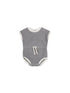 This fun retro romper is made of a soft terry cloth fabric with a drawstring at the waist for a perfect fit. It has snap closures at the back neck and bottom inseam opening for easy changing.