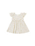 Flutter sleeve dress with sweet ruffle detail in our classic pointelle fabric. Button back closure for easy changing. All sizes include coordinating bloomers.