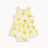 Tank style bodysuit with and all over suns print. Features a cute ruffle skirt and button snaps at the bottom for easy dressing. Made from 95% GOTS Organic Cotton, 5% Elastane.