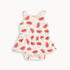 Tank style bodysuit with and all over watermelon print. Features a cute ruffle skirt and button snaps at the bottom for easy dressing. Made from 95% GOTS Organic Cotton, 5% Elastane.