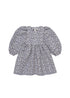 Gorgeous flowered jacquard designed dress. Features a rounded neck, puff sleeves, gathered waist and full volume skirt.