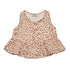 Pretty animal print peplum tank in a soft blush pink. Features three wooden button front that fully opens, ruffle peplum hemline and loose fit. Pair with the matching bloomer for a beautiful set.