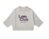 Oversize gray melange baby sweatshirt with "Love Club" text on the front. Features a round neck, ribbed edges two buttons at left side of neck. Made from 100% organic cotton.