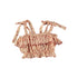 Pretty cropped top with all over hearts print. Features adjustable tie straps, ruffle trims and elasticized top and bottom to create a slight puff effect.