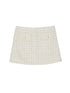Fashionable boucle skirt. Fully lined skirt features gold lurex threads throughout, faux front pockets with gold heart buttons and pearl-look beaded trim. Zip closure in the back. Pair with this top for a cute outfit.