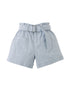 Cute paperbag shorts in a soft blue. Features two front pockets, two back pockets, adjustable belt, white stitching and elasticized waistband for comfort.