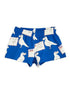 Cute blue shorts with all over pigeon and postcard print. Pair with the coordinating pigeon tee.