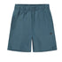 Comfy sporty shorts in blue with two side pockets, one back pocket and an embroidered peace sign on the left side.
